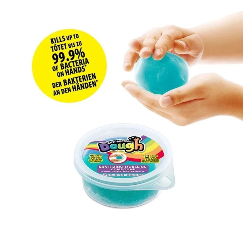 Adonan anti-bakteri inovatif yang menghilangkan hingga 99,9% bakteri. Bersihkan tangan Anda saat bermain. Cukup gosokkan adonan ini di tangan Anda saat Anda bermain setidaknya selama 1-2 menit. Set ini hadir dalam wadah penyimpanan yang ringkas dan dapat digunakan kembali, cocok untuk bersenang-senang dan membersihkan saat bepergian.