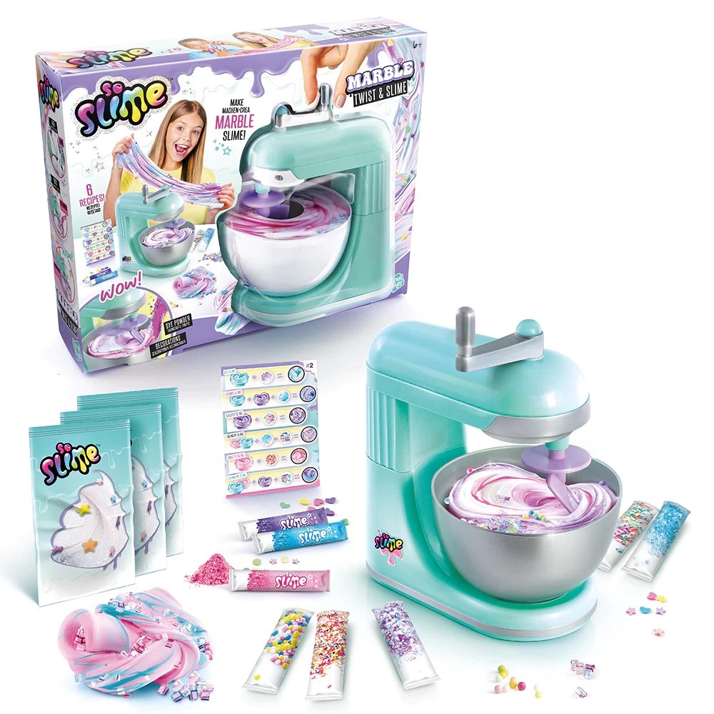 Mixer slime untuk mencampur slime Anda seperti profesional sejati! Termasuk panduan resep sehingga Anda dapat membuat slime yang benar-benar unik. Masukkan slime putih Anda ke dalam mixer, tambahkan pewarna dan dekorasi, dan saksikan campurannya! Cocok untuk usia 6 tahun ke atas.