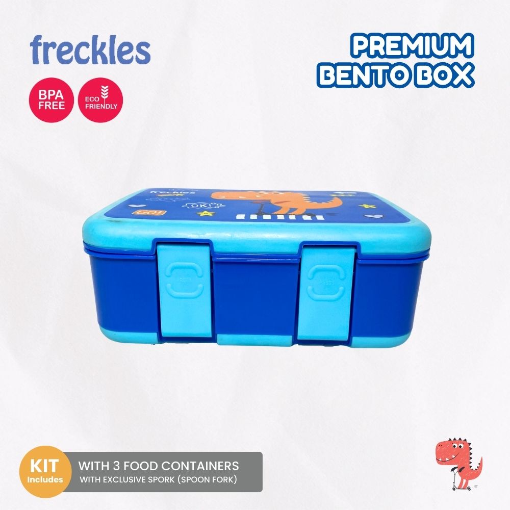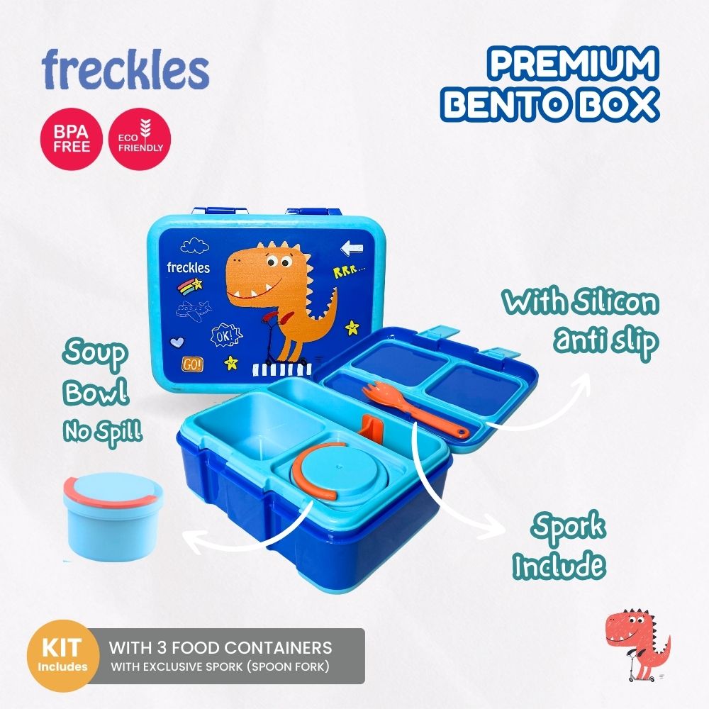 Freckles Bento Box bisa menjadi favorit bento box si kecil karena memiliki desain yang lucu dan memiliki pembuka tutup yg mudah dibuka oleh si kecil, memiliki kapasitas sebesar 1000ml untuk tempat bekal dan 3 kompartemen untuk memisahkan lauk dan nasi, dilengkapi mangkuk sup anti tumpah dan juga sendok garpu.