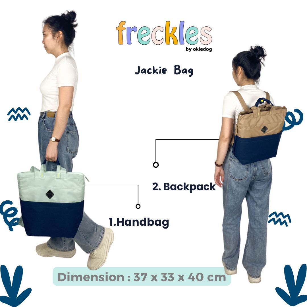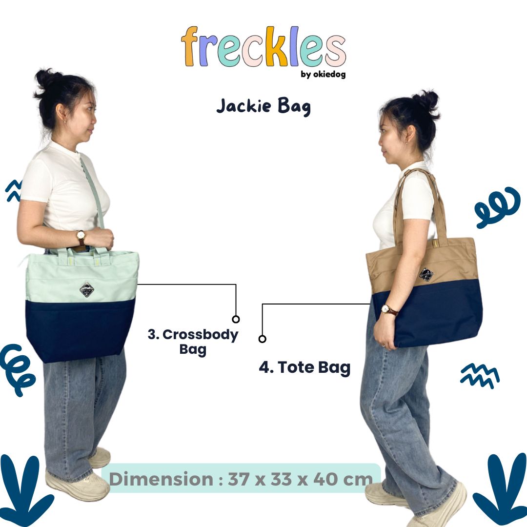Freckles Jackie 2in1 Bag merupakan Tas bayi dengan ukuran besar mampu memuat semua keperluan Moms dan si kecil. Memiliki banyak kompartemen yang membuat muatan tas semakin banyak. Berbahan polyester dan bisa dijadikan 4 model tas; handbag, backpack, crossbody bag dan tote bag agar mudah dibawa saat mengajak si kecil berpergian.