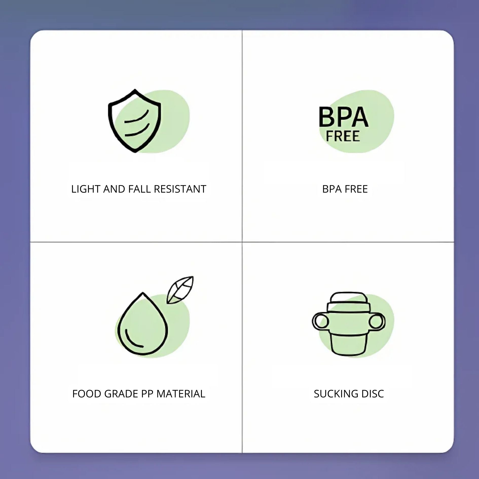 memiliki 2 ukuran 240ml dan 320ml dilengkapi sedotan, penutup dan pegangan di sisi kanan agar memudahkan si kecil minum dengan mudah