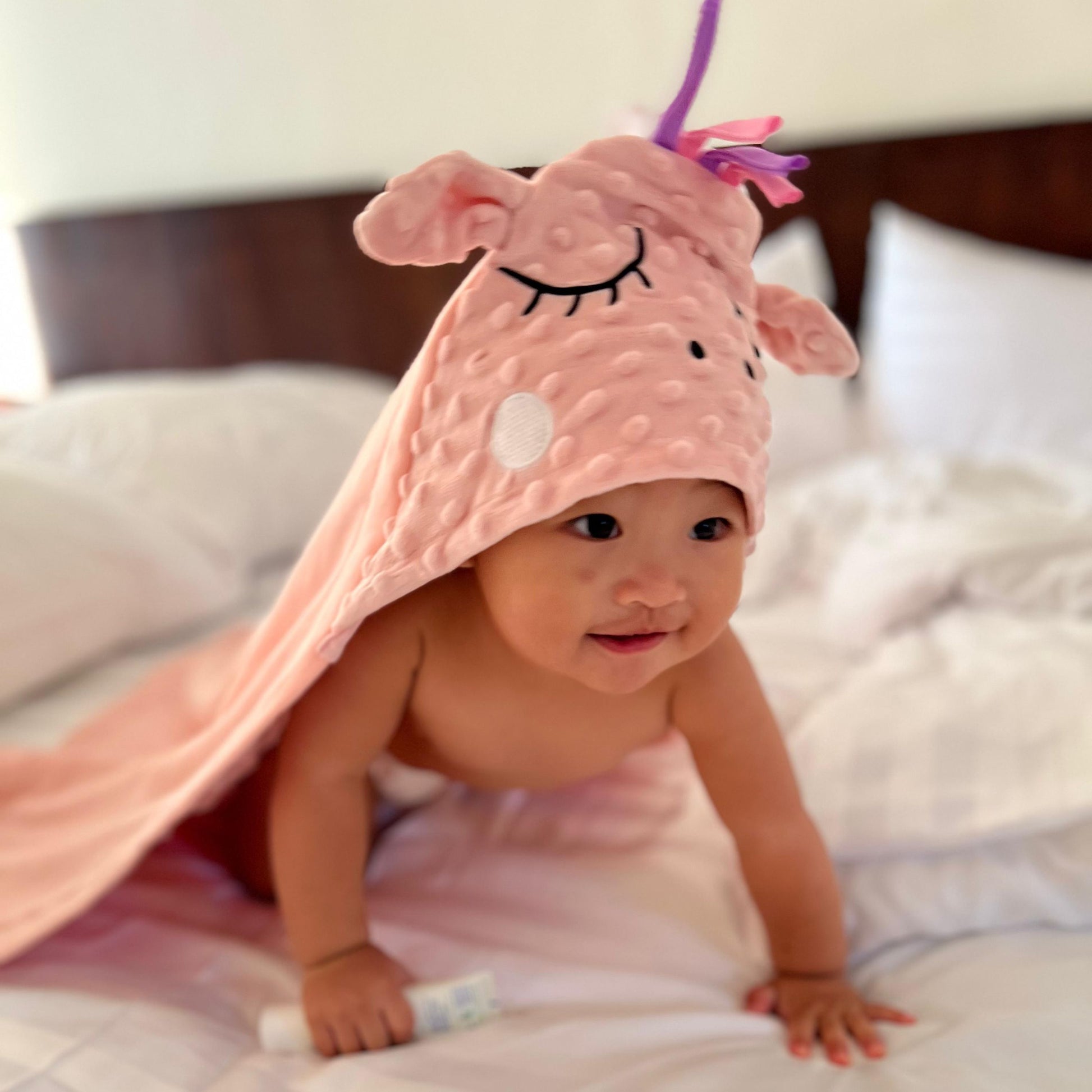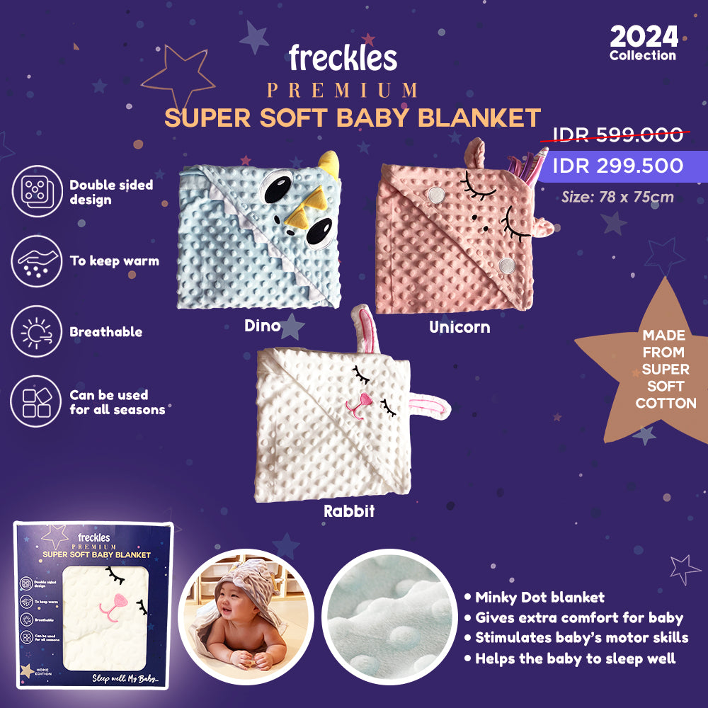 Selimut Freckles dilengkapi dengan tekstur minky dot untuk menstimulasi saraf sentuhannya dan akan membuat ia nyaman ketika tidur dan membuat si kecil tidur lebih nyenyak, serta dilengkapi dengan hoodie untuk kepala si kecil. Selimut Freckles dapat menghangatkan si kecil ketika ia sedang tidur tetapi tetap dapat bernafas dengan lega. Selimut Freckles juga dapat digunakan untuk semua musim.