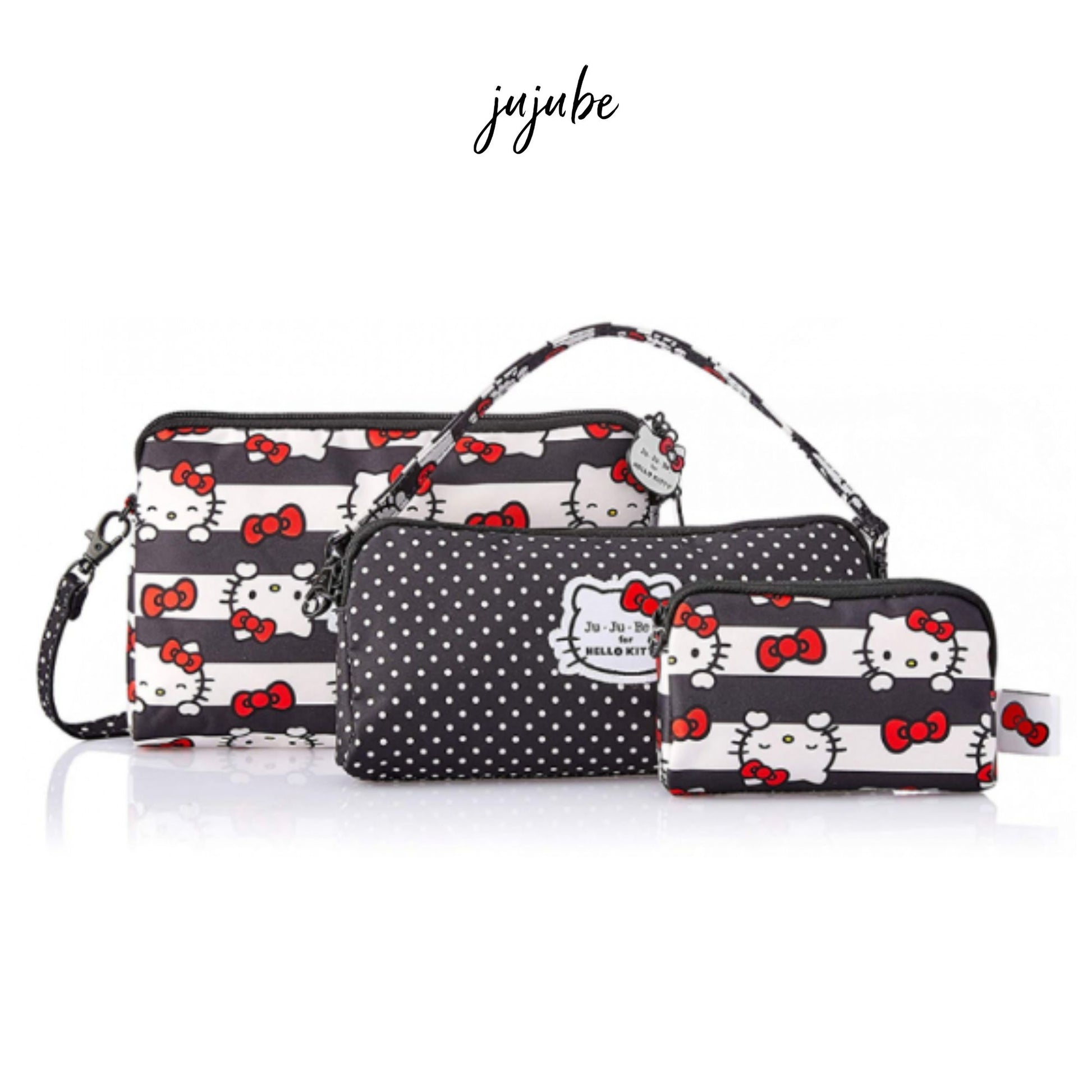 Jujube Be Set dengan tiga tas kecil yang super cute dan ukuran yang berbeda cocok untuk menyimpan keperluan penting atau berpergian ke pesta karna di lengkapi oleh dua tali .