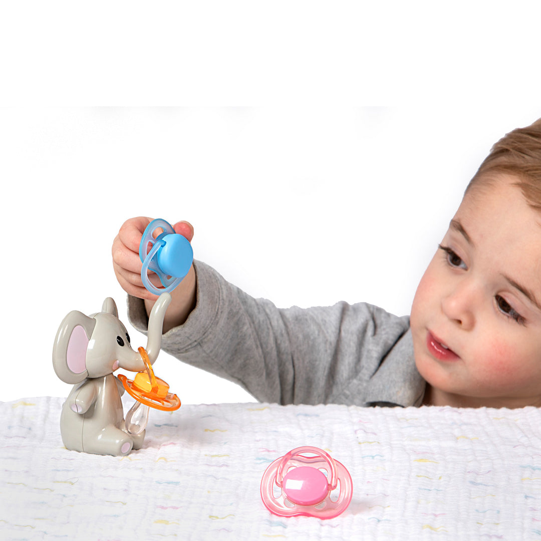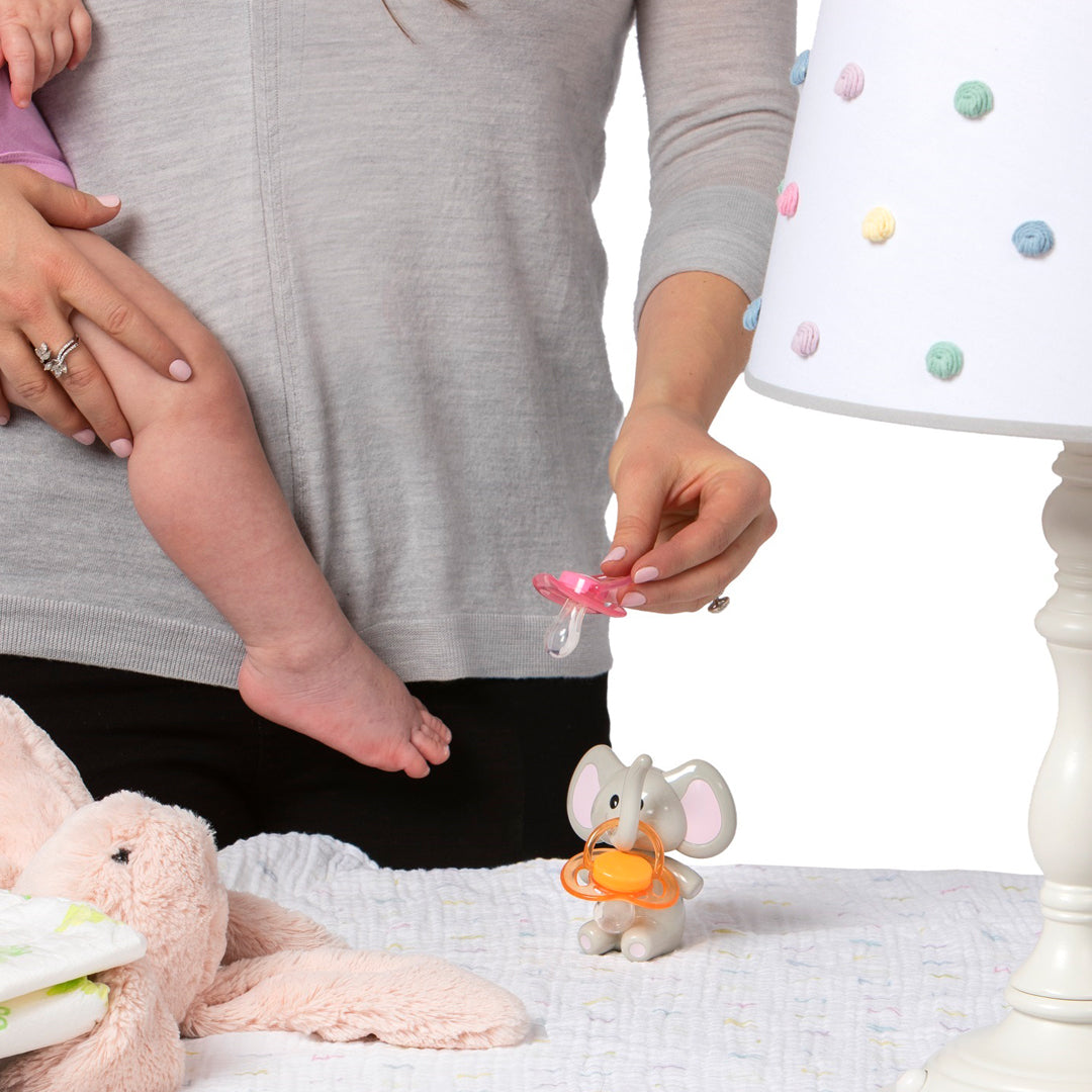 “Elephant Pacifier Holder” Elii, sang gajah, menyediakan tempat yang bersih untuk menggantung dot Anda! Gantung pegangan dot dengan mudah. Untuk menghindari kontak dengan kotoran dan kuman di permukaan untuk menjaga dot tetap bersih dan teratur.