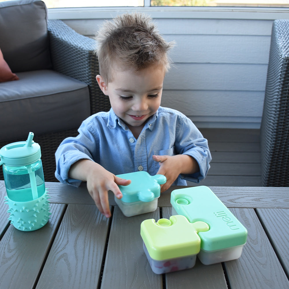 | Wadah penyimpanan makanan “Puzzle Container” dengan 3 kompartemen membuat makan menjadi menyenangkan! Tiga kompartemen kotak bento masuk satu sama lain membentuk mainan puzzle yang menyenangkan dan berwarna-warni. Kotak bento yang lucu ini sangat cocok untuk anak-anak (dan orang dewasa!) dari segala usia, termasuk balita dan anak-anak, yang suka gelisah dan bermain saat ngemil dan makan siang. • Mudah dibuka untuk anak-anak • Kedap udara dan tahan bocor • Microwave & freezer safe • Bebas BPA dari bahan kimia berbahaya seperti BPA, timbal, kadmium, PVC, dan 100% aman untuk makanan. Kapasitas tiga kompartemen: 6,7oz/200ml, 6,7oz/200ml, 15,2oz/450ml. Total kapasitas 28,6oz/850ml. Cuci & Perawatan: 1. Pisahkan untuk dicuci 2. Bersihkan secara menyeluruh dengan sabun dan air hangat atau di mesin pencuci piring sebelum digunakan pertama kali dan setelah digunakan 3. Biarkan mengering sebelum di gunakan Kembali |