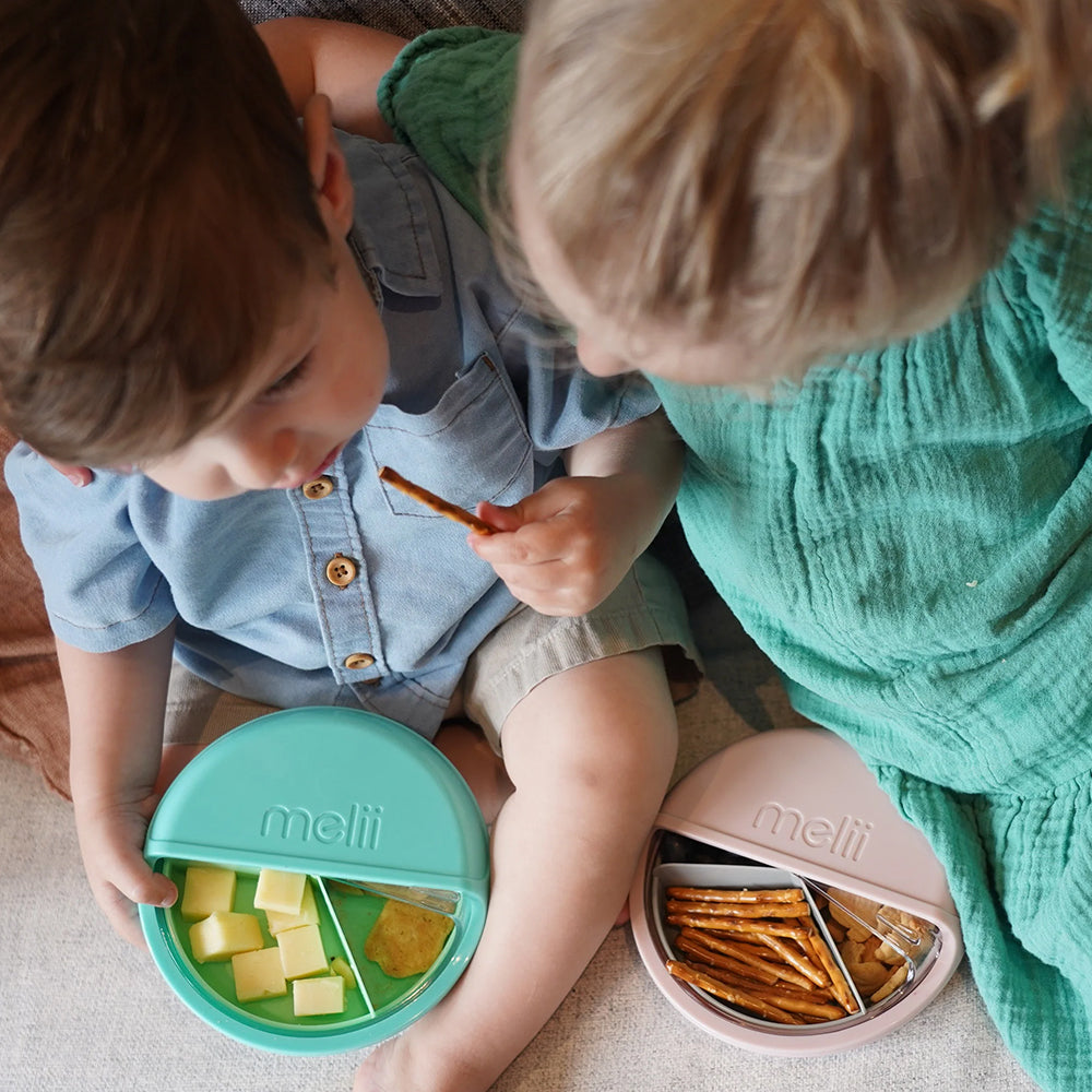 Sempurna untuk petualangan saat bepergian, Melii Spin Container ringkas dan portabel, mudah dimasukkan ke dalam ransel, tas makan siang, atau tas popok. Design yang kokoh memastikan bahwa makanan ringan tetap segar dan aman.