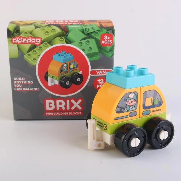 Okiedog BRIX terdiri dari 24 macam model kendaraan yang berbeda dan berguna untuk menambah pengetahuan si kecil. Dengan bermain Okiedog BRIX si kecil akan menjadi lebih kreatif dan memiliki banyak pengetahuan.