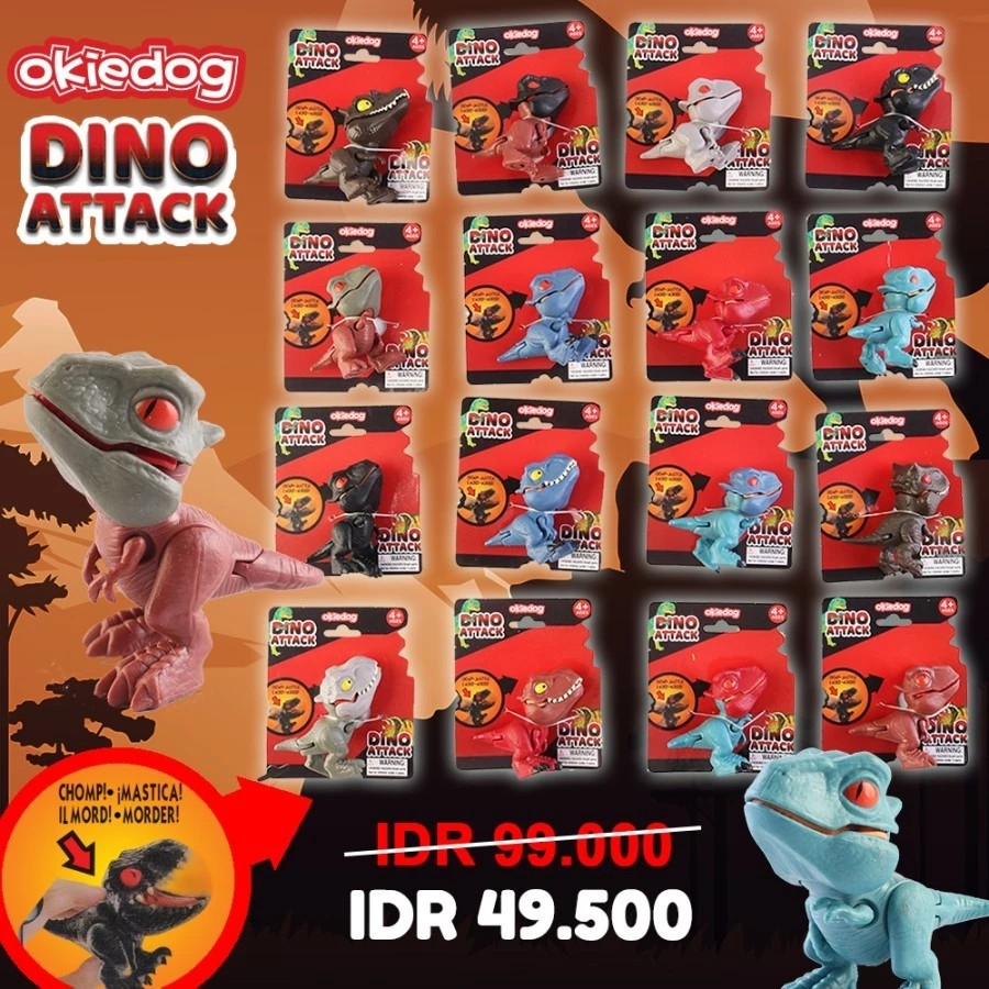 Bersiaplah untuk sensasi dan petualangan besar dengan Okiedog Dino Attack, ada 16 jenis Dino yang dapat kamu dapatkan secara surprise yang akan membuat petualanganmu menjadi lebih seru. Dino Attack dapat membuat anak bermain sembari belajar untuk melatih kordinasi mata dan tangan, Dino Attack memberi anak-anak kesempatan untuk mengeksplorasi imajinasi mereka dengan menggerakan tangan, kaki, ekor serta mulut Dino yang dapat terbuka. Cocok digunakan untuk anak usia 4 tahun keatas.