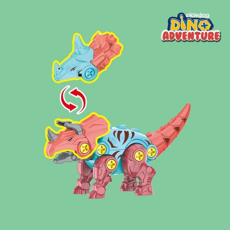 Okiedog DIY Dino Adventure merupakan koleksi terbaru dari Okiedog DIY series. Okiedog DIY Dino Adventure dilengkapi dengan obeng mini yang berguna sebagai alat untuk bongkar pasang DIY Dino. Si kecil dapat mengubah kepala Dino sendiri, dari Triceratops menjadi Centrosaurus. Dengan Okiedog DIY Dino Adventure, motorik serta kemampuan berpikir anak dapat terlatih. Cocok digunakan untuk anak usia 3 tahun keatas.