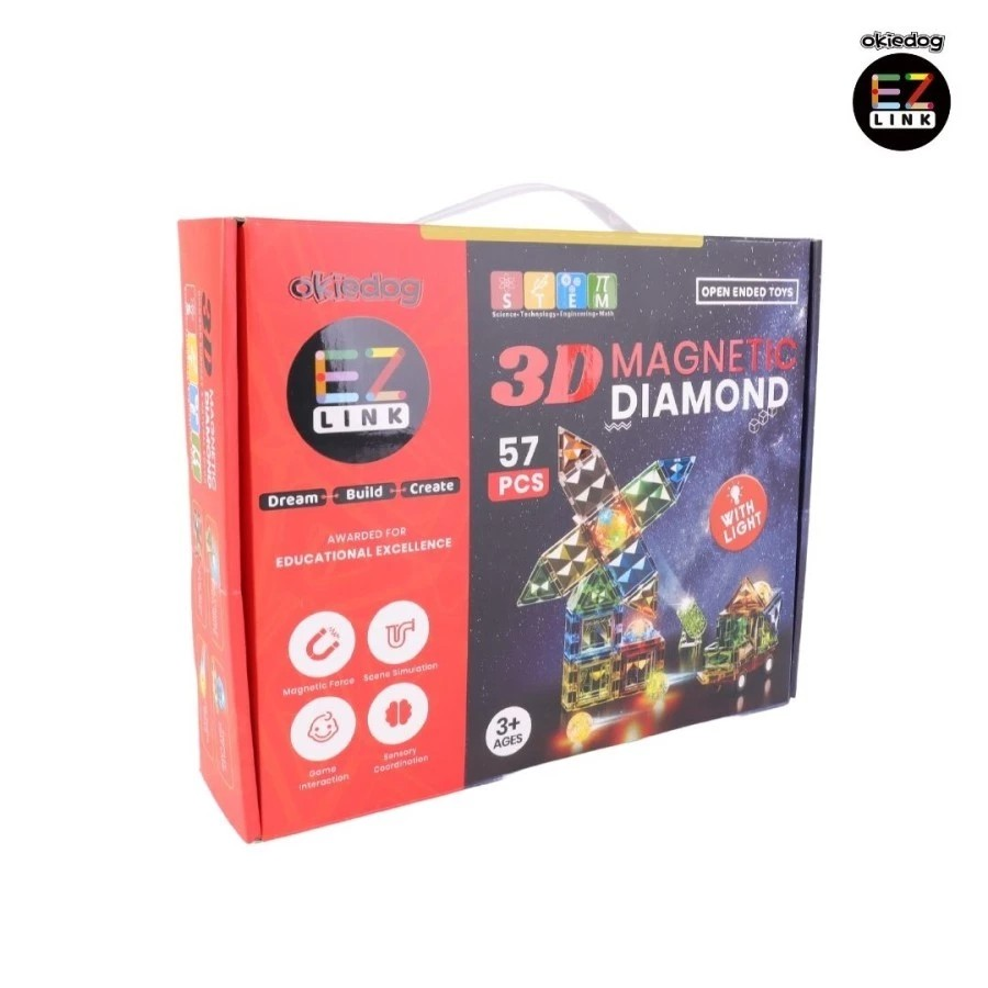 Okiedog EZLINK Magnetic Diamond With Light merupakan mainan edukasi anak terbaru dari Okiedog dengan pendidikan STEM (Science, Technologi, Engineering, and Math), dilengkapi dengan lampu agar si kecil semakin bersemangat dalam bermain sambil belajar.
